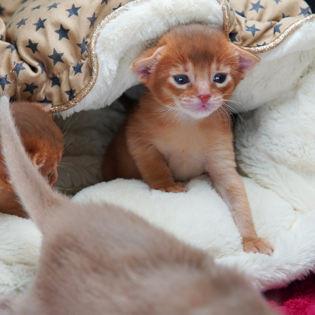 On Monday evening March 28th, 2022, Redcheetah’s Grace ”Madde” gave birth to a wonderful triplet: a sorrel girl and boy, and a fawn girl. After a rough start the mother and kittens are now doing well. This is the first litter born in the cattery’s new hometown Kuopio, thus the litter theme ’Kuopio’.