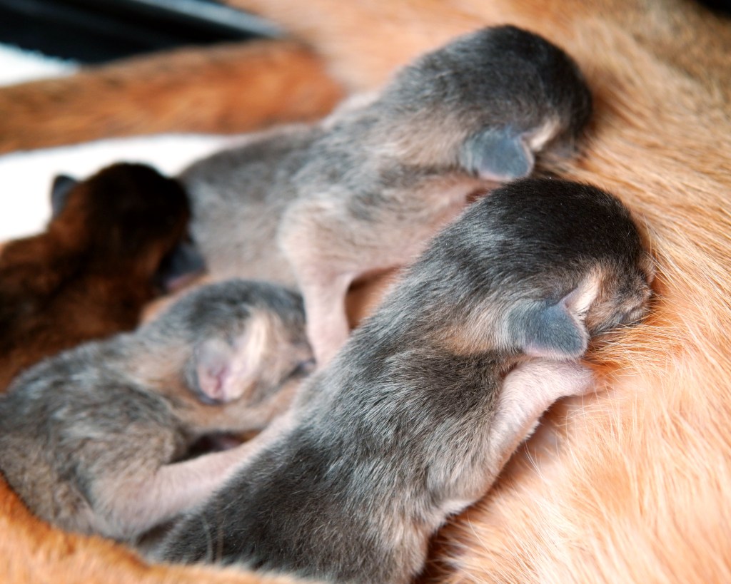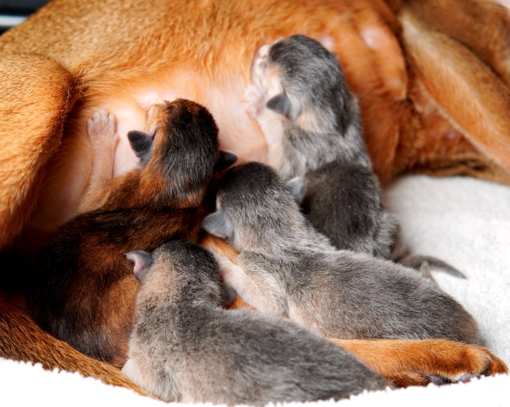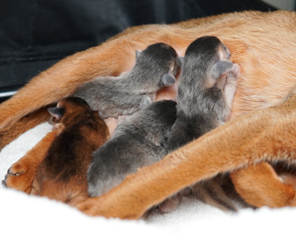 On early Monday morning on April 14th 2025 Kermakupin Bombay Sapphire ”Pomppu” gave birth to three blue boys and one ruddy boy. The delivery was natural although the first and biggest kitten was though to deliver. The delivery of the other three kittens was easy and quick. The kittens started to gain weight from the very beginning, and Pomppu took on her role as a caring and loving mother.