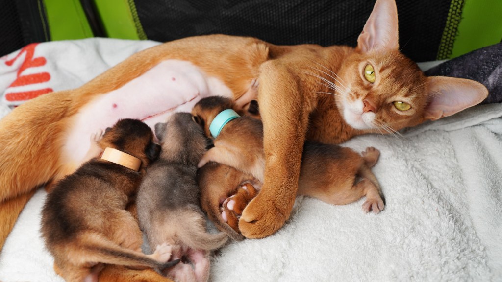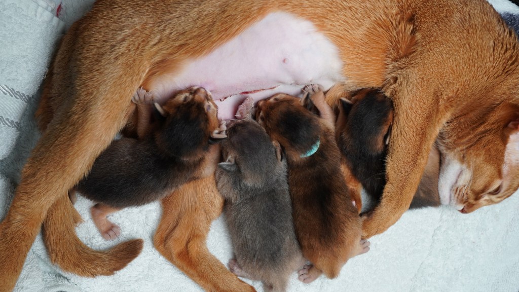 Kermakupin Muailman napa ”Mesi” gave birth to a beautiful litter of four on November 8th, 2023, a late Wednesday night. Unfortunately, the first kitten in the birthing channel got entangled with her own placenta and the kittens had to be freed with c-section.